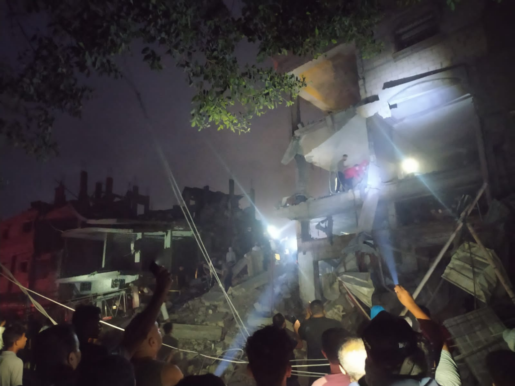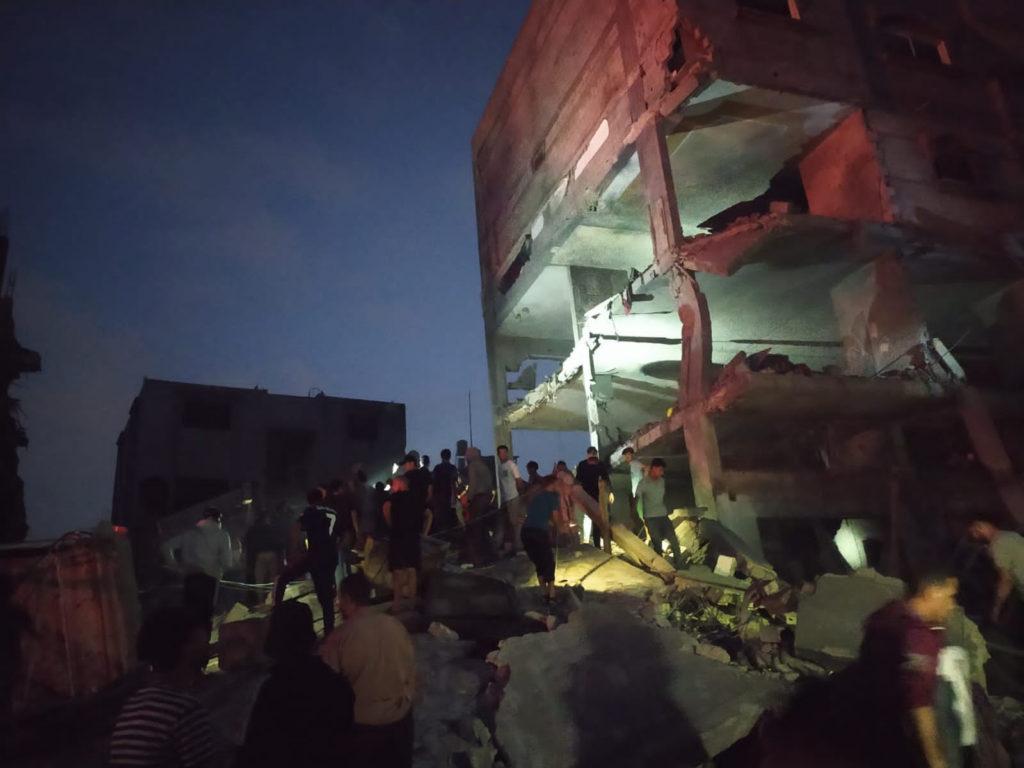 Images of the Abu al-Saud family home showed the house reduced to rubble, with volunteers surrounding the site. Taken in the dark, the photographs suggest the incident occurred late Tuesday night or early Wednesday morning.