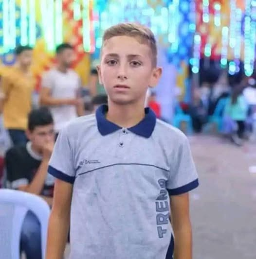 The death of the 17-year-old child Zaki Iyad Al-Beleshee was announced by his uncle Ismail Al-Baleshee. Zaki had blonde hair, and was pictured with a serious expression, wearing a light blue polo shirt with dark edges.