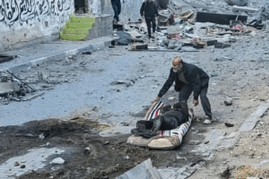 According to journalist Anas Sharif and many others, Israeli forces continued to target anyone that tried to rescue the injured and killed lying in the streets. The tweet included images of bodies piled in the rubble and one man trying to drag another body, unclear if they are injured or deceased, on a mattress. @Kahlout9 mentioned that at the time, 29 bodies had been recovered but “martyrs remain in the streets”.