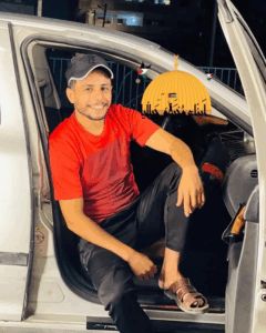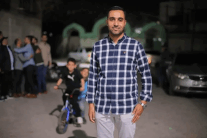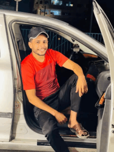 A Facebook post from the “Jabalia camp residents” page announced the death of “son of the camp” Mustafa Farid Mahmoud who had “ascended to join the convoy of Jabalia camp moons” and included an image of Mustafa sitting in the front seat of a car in a red shirt, black pants, and sandals.