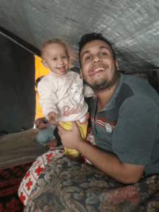Nadeem Ma memorialized their cousin’s daughter Nariman Hassan al-Masri (Umm Samid) and Nariman’s daughter Hajar Muhammad Abu Sakr, describing them as “steadfast in their faith” and mentioning that they would be joining their siblings Thaer and Muhammad who had died before them. The post included an image of a young baby girl wearing a hat.