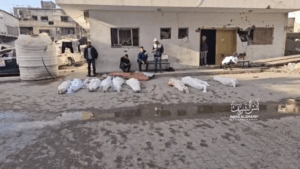 A Facebook post from Orouq Ebraheem provided the names of those killed in the “massacre” in the vicinity of Kamal Adwan Hospital: 34-year-old Muhammad Jawad Ahmad al-Sayyid (Beit Lahia), 38-year-old Nariman Hassan Abd al-Masri (Beit Lahia), her daughter Hajar Muhammad Ramadan Saqr (Beit Lahia), 28-year-old Mustafa Farid Muharab Mahmoud (Jabalia-Tal al-Zaatar), Lamia Mustafa Hassan al-Haw (Beit Lahia-Shi City), 49-year-old Dr. Nasif Ali Ali Abu al-Omrain (al-Nasr-General Security), his wife Manal Abdul Razek Abdul Fattah Abu al-Omrain (Jabalia), their son Bakr Nasif Ali Abu al-Omrain (Jabalia), their other son Basil Nasif Ali Abu al-Omrain (Jabalia), their daughter 14-year-old Lana Nasif Ali Abu al-Omrain (Beit Lahia), 30-year-old Yasser Mahmoud Fouad Abu Matar (Beit Lahia), 40-year-old Faten Ghazi Ali Abu Awad (Jabalia), 20-year-old Mahmoud Ali Mahmoud Zaher (Gaza), his cousin 28-year-old Yahya (Yousef) Marwan Muhammad al-Rantisi (Jabalia), his cousin 36-year-old Abdullah Khader Muhammad al-Rantisi (Jabalia), 33-year-old Bilal Osama Abd al-Malik Abu al-Jibin (Beit Lahia-al-Mashru’), 27-year-old Musab Harb Nimr Zaqoul (Jabalia-al-Houja Street), 27-year-old Omar Marwan Muhammad Tabil (Jabalia), 48-year-old Awda Muhammad Awda Hussein (Jabalia), 29-year-old Abdul Aziz Fayez Muhammad al-Haw (Jabalia), 26-year-old Abdullah Madhat Hamdan al-Hajj (Jabalia), 27-year-old Mahmoud Suhail Musa Alian (Jabalia), Abdullah Ramadan Abdul Rahman (Jabalia), Yahya Muhammad Mahmoud Shalha (Jabalia), 24-year-old Younis Abdullah Younis Khala (Jabalia), 25-year-old Muhammad Ahmad Juma Ghaben (Jabalia), 35-year-old Farah Muhammad Matar Ghaben (Jabalia), 35-year-old Ahmad Abdul Fattah Abdullah Abu Mahadi (Jabalia), his brother 26-year-old Mahmoud Abdel Fattah Abu Mahadi, 10-year-old Muhammad Arab Hisham Abu Saif (Jabalia), 64-year-old Arif Mahmoud Abu Saif (Abu Ali), and his son 36-year-old Muhammad Arif Mahmoud Abu Saif.