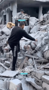Arif Mahmoud Abu Saif was honored as the muezzin of a local mosque by Umm al-Ghwali. Relative Omar Abu Saif told a story of the child Muhammad Arab Abu Saif chopping wood just a few days before to keep his family warm in northern Gaza, adding that he was killed along with his cousin Arif and his cousin’s son Muhammed Arif and that their cousin Mahmoud Abu Saif (Abu al-Layl) was also injured. The post included an image of young Muhammad Arab wearing a blue shirt and pants and chopping wood with an axe.