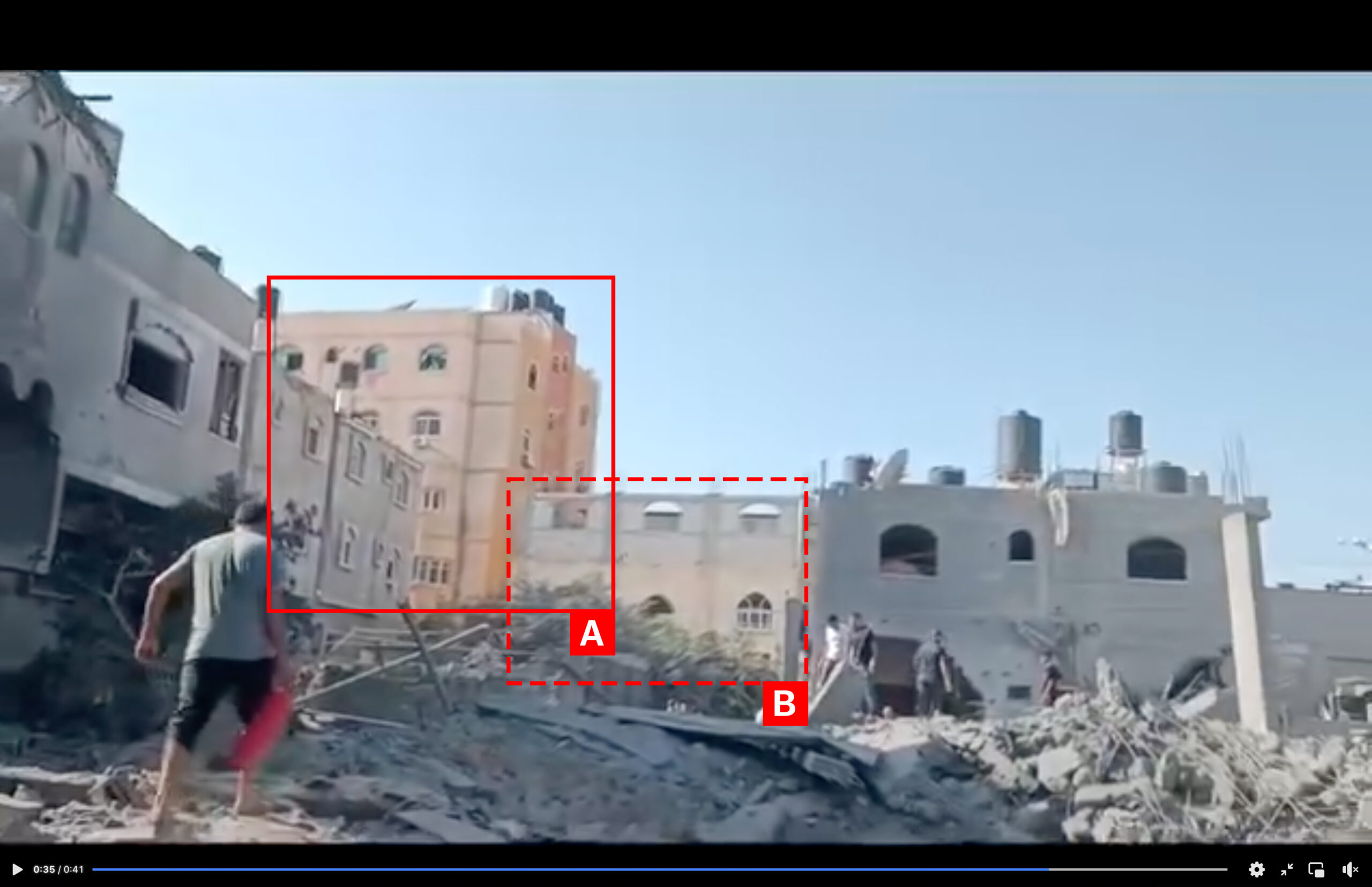 Reports of the incident mention a residential building being struck in the vicinity of Al-Isra Mosque (مسجد الإسراء) in Rafah (رفح). Analysing audio-visual material from sources, we have narrowed the location down to the following exact coordinates: 31.281043, 34.260533.