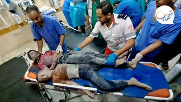 Photos posted by the Shehab Agency in the aftermath of the attack showed at least four injured civilians being tended to by Palestinian Red Crescent Society workers. One woman was covered in blood and had severe injuries to her face. A young boy was being carried into a PRCS ambulance, with bandages on his left arm and right hand, and evident injuries to his face. Two young boys were pictured lying next to each other on a stretcher, covered in ash. However, as the caption says that the injuries occurred “in the Sheikh Zayed area and the Qalibu area,” it is unclear if all of those injuries occurred in this strike or in another.