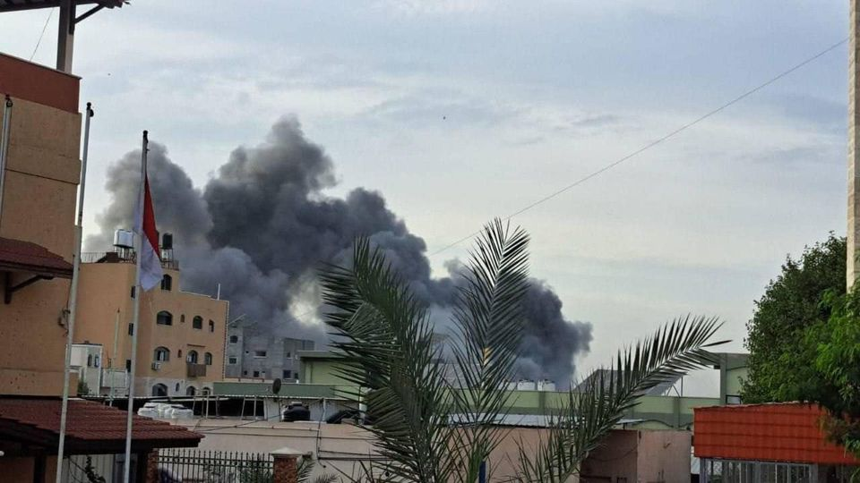 A photo posted to Facebook by Shereen Hatem showed a cloud of smoke rising from a densely built area, presumably showing the site of the alleged strike on the Muhammad al-Fateh Mosque.