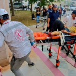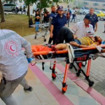 Several media and news outlets reported the incident, citing several casualties. Shehab Agency and other news outlets shared photos depicting the incident’s aftermath. Medical professionals were shown rushing wounded and distressed civilians into the hospital. One image depicted a man being carried into the hospital on a stretcher; one of his legs was severely wounded and bloodied and appeared to have been severed by an explosive blast. Another image depicted a young boy, with blood splattered on his face and on his green sports shirt, being lifted onto a hospital bed by a medic.