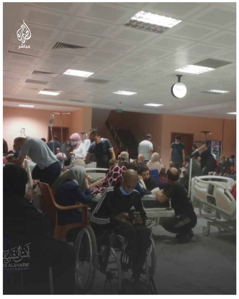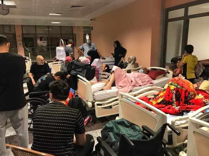 The Turkish Palestinian Friendship Hospital shared images showing the damage caused by the bombing, along with an overcrowded hospital floor crowded with patients.
