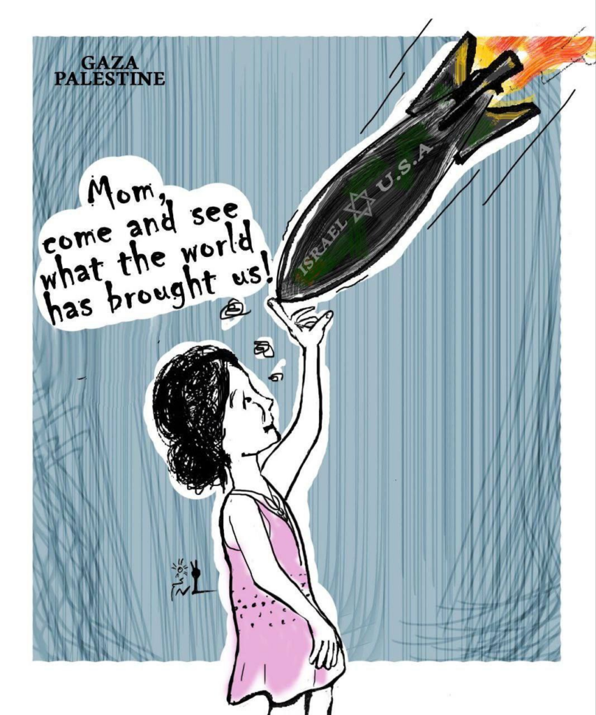 Mourning his killed and injured relatives in a Facebook post, artist Basel al-Maqousi wrote, “Martyrs: My second mother, my uncle’s wife, Hikmat Mahmoud al-Maqousi (Umm al-Abd), my uncle’s wife, Hossam (Samira) al-Maqousi (Wissam’s mother), and my cousin, Suha Kamal al-Maqousi, her son Ibrahim Mahmoud al-Maqousi, and my cousin / Maryam Kamal al-Maqousi and her son, Sanad Mustafa al-Zanati, and a large number of children were injured.”