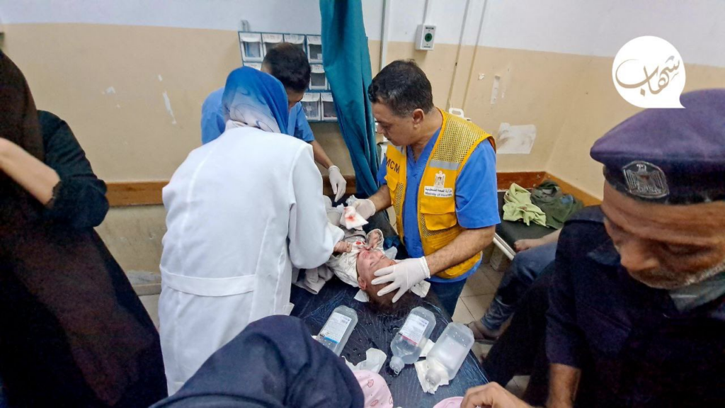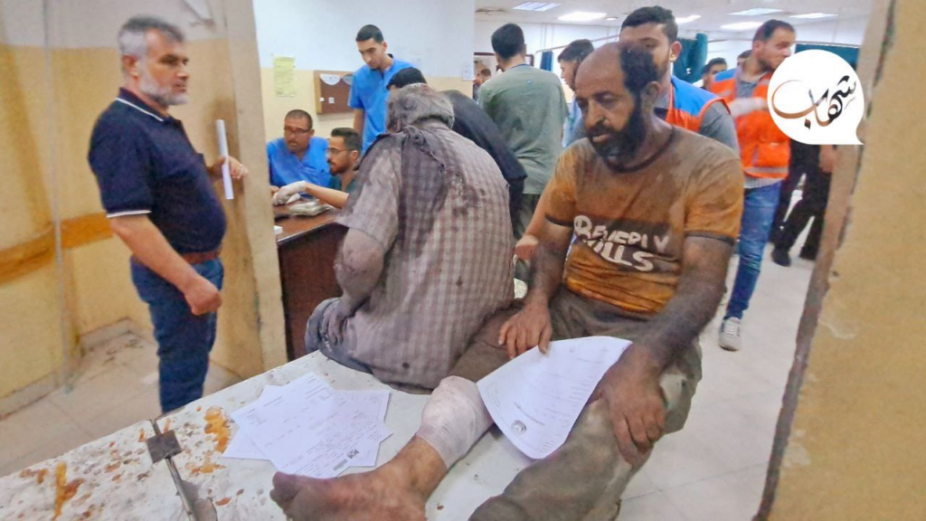 According to a Shehab reporter and Almnara news, the injured were taken to the Indonesian Hospital for treatment. Images shared on social media pages show a child being treated by medical staff. Another shows a man, dazed and covered in dust, clutching his wounded leg, as another man with a visibly blood-stained shirt sits next to him.