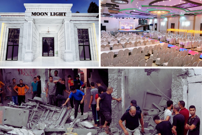 The owner of the wedding hall Youssef al-Hayawi (Abu Iyad) (58) and his son, Moataz Youssef al-Hayawi (19), were killed when Israeli aircraft allegedly bombed the Tal al-Qamar wedding hall.