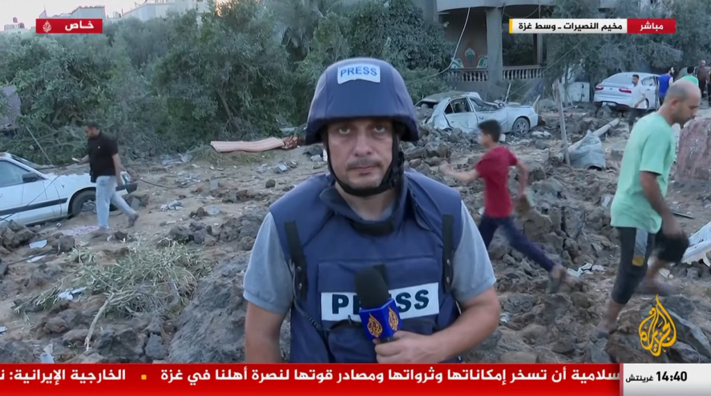 At 16:41 on October 30, the Palestinian Press Agency (Safa.ps) reported “More than 20 martyrs and dozens of wounded as [Israeli] aircraft bombed two homes and a wedding hall housing displaced persons in the Nuseirat camp in the central Gaza Strip.” Mohammad Alsaafin tweeted a report by Al Jazeera’s Hisham Zaqout stating that “3 Israeli airstrikes hit [the wedding hall] last night” and that “everyone here was either killed or wounded.”