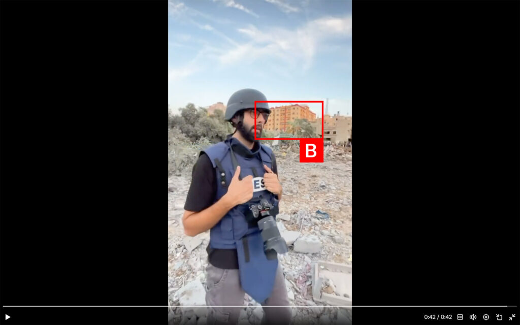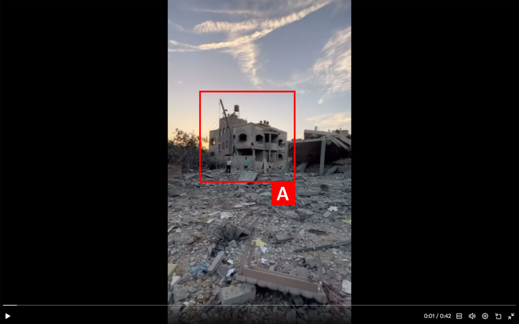 Reports of the incident mention a wedding hall and a building in the immediate vicinity being struck in the Nuseirat camp (مخيم النصيرات) in the Deir Al Balah governorate (محافظة دير البلح). Analysing audio-visual material from sources, we have narrowed down the two location to the following exact coordinates: 31.457304, 34.390605; 31.457037, 34.391135.