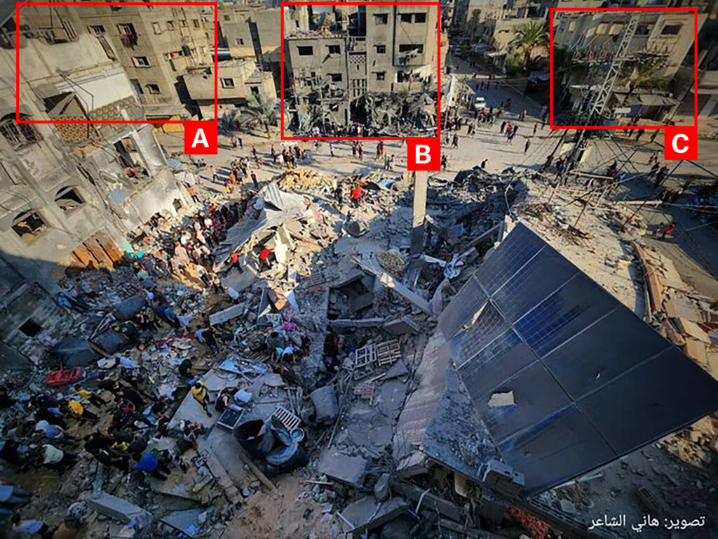 The Palestinian press agency, Safa, reported around 10:22 am that four women from the Al Zahar family had been killed in the alleged strike and a number of others remained missing under the rubble. Airwars was able to identify the names of eight members of the Al Zahar family who were killed in the strike.