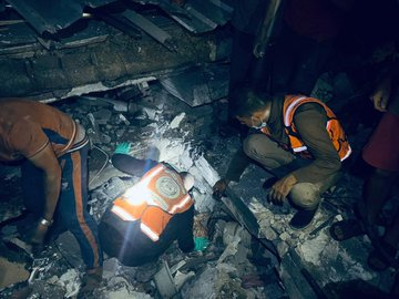 Shehab Agency News reports the strike occurred shortly before 6:36 AM. Twitter user @jolnarfarag posted a statement attributed to the General Directorate of Civil Defense, reporting that civil defense crews retrieved killed and injured victims from the rubble of the home. Photos posted by Shehab Agency show the crews in the midst of their rescue mission, while a photo posted by Twitter user @palestineultra shows the home and the surrounding area had been completely destroyed.