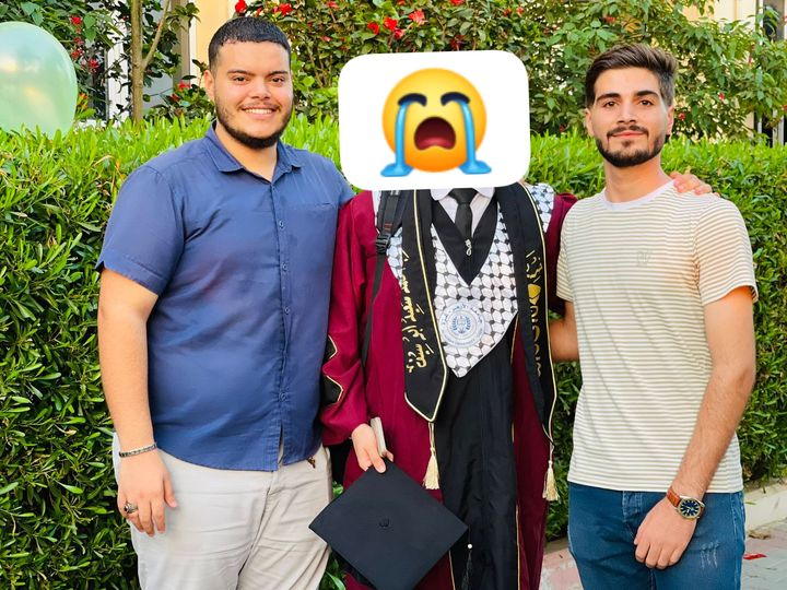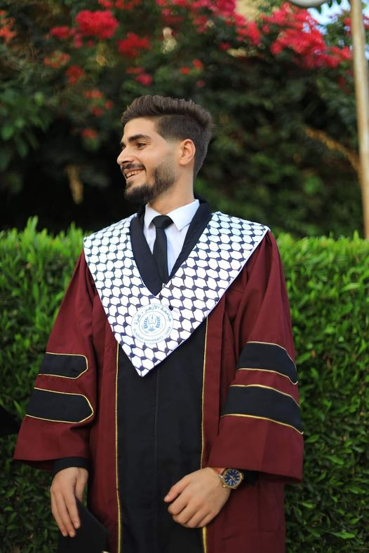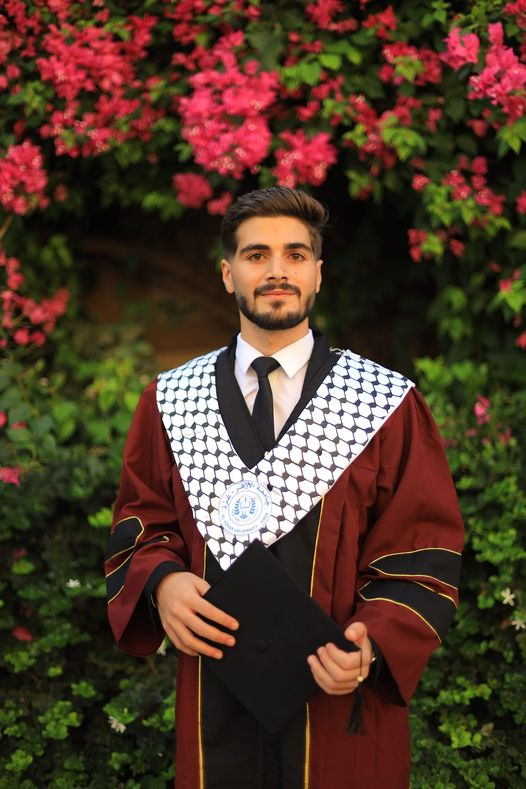 Sayel Mustafa Muhammad al-Hanawi was a talented recent law graduate. Facebook user Suhaib Yassin shared a video of himself with Sayel Mustafa Muhammad al-Hanawi at their graduation, writing that “Sayel Al-Hanawi (my friend and brother) is my colleague in the Faculty of Law. We lived through 4 years of good and bad, suffering from studies, preoccupations, and class withdrawals. He was a very popular person (and we graduated together). The agreement between us was that we would be activists in the field of human and women’s rights and represent our country in international forums (we had great hopes and dreams). And ambitions but the [Israeli military] killed Sayel and killed the dream, and I was left alone, and I will continue on the path, be with me and your place is in the heart (and remember) Sayel is not a number.”