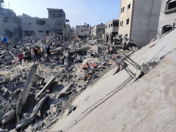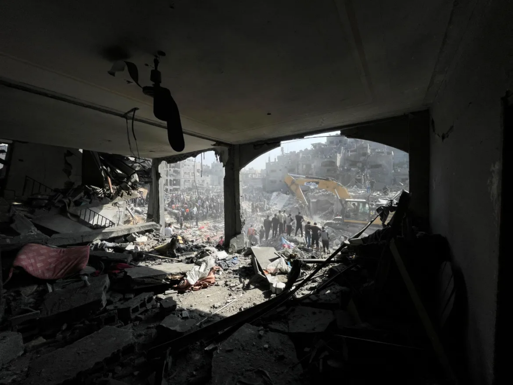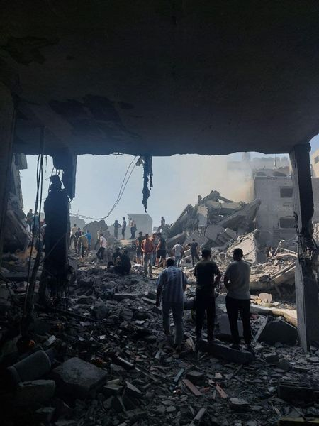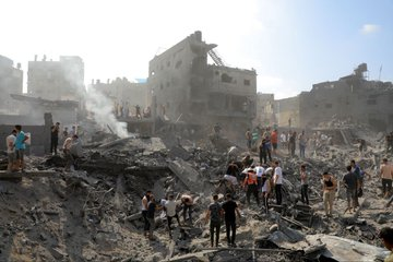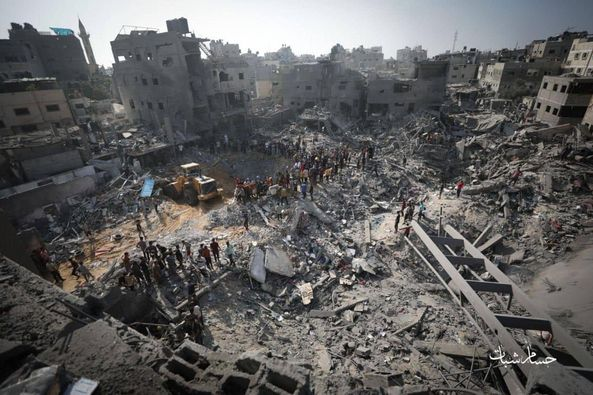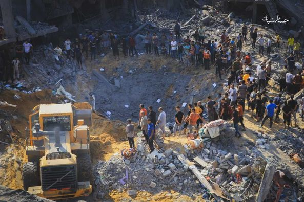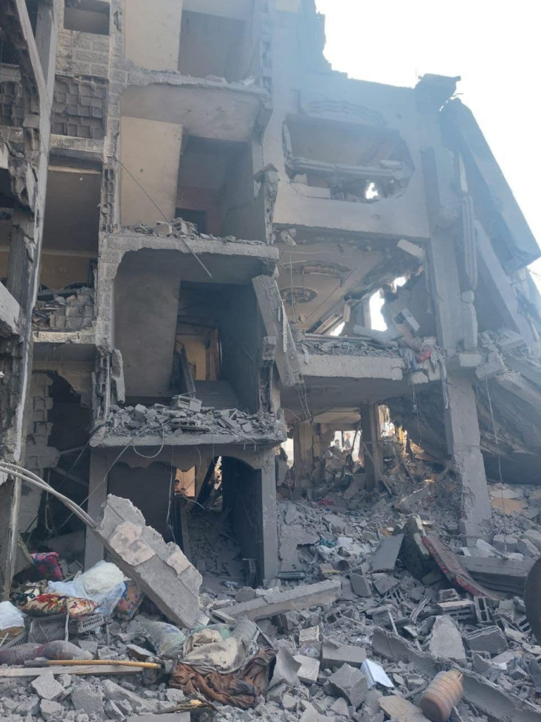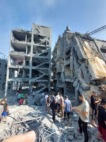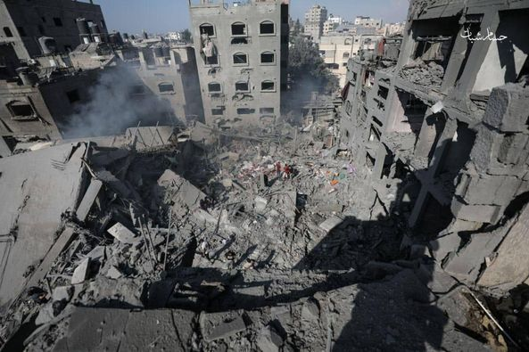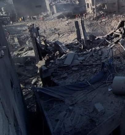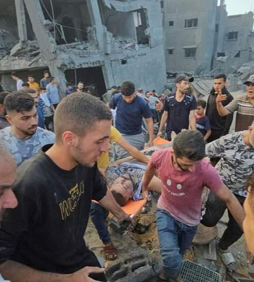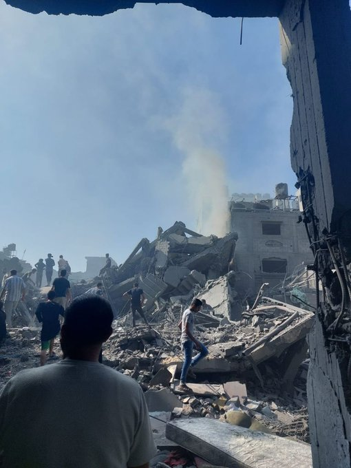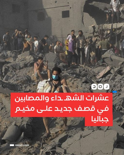 Facebook user Abdallah Omar gave further details about the location of the strike and those affected, explaining that “the area that was targeted in the #Jabalia camp is the Safi area, east of the Six Martyrs Junction, west of the camp. The [Israeli forces] bombed a number of residential buildings inhabited by residents and displaced people… Talk about a new massacre and dozens of martyrs!”