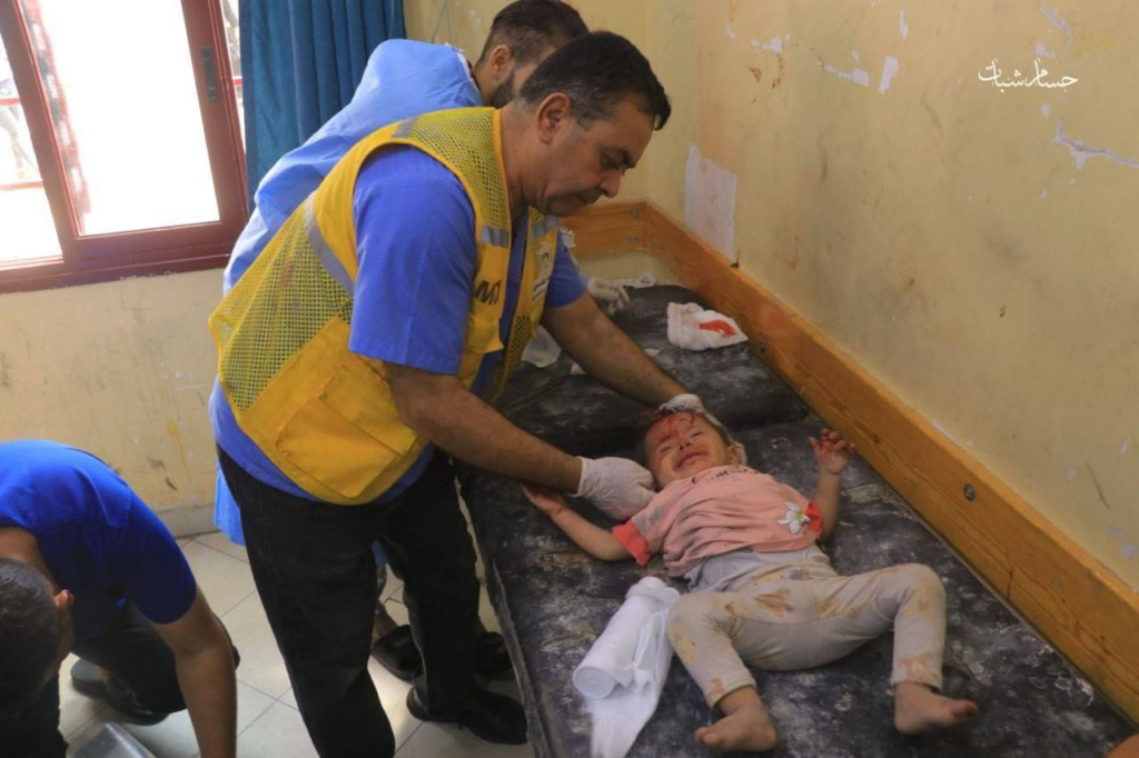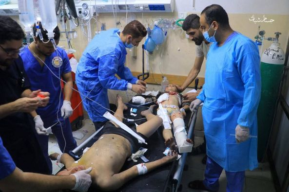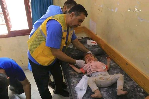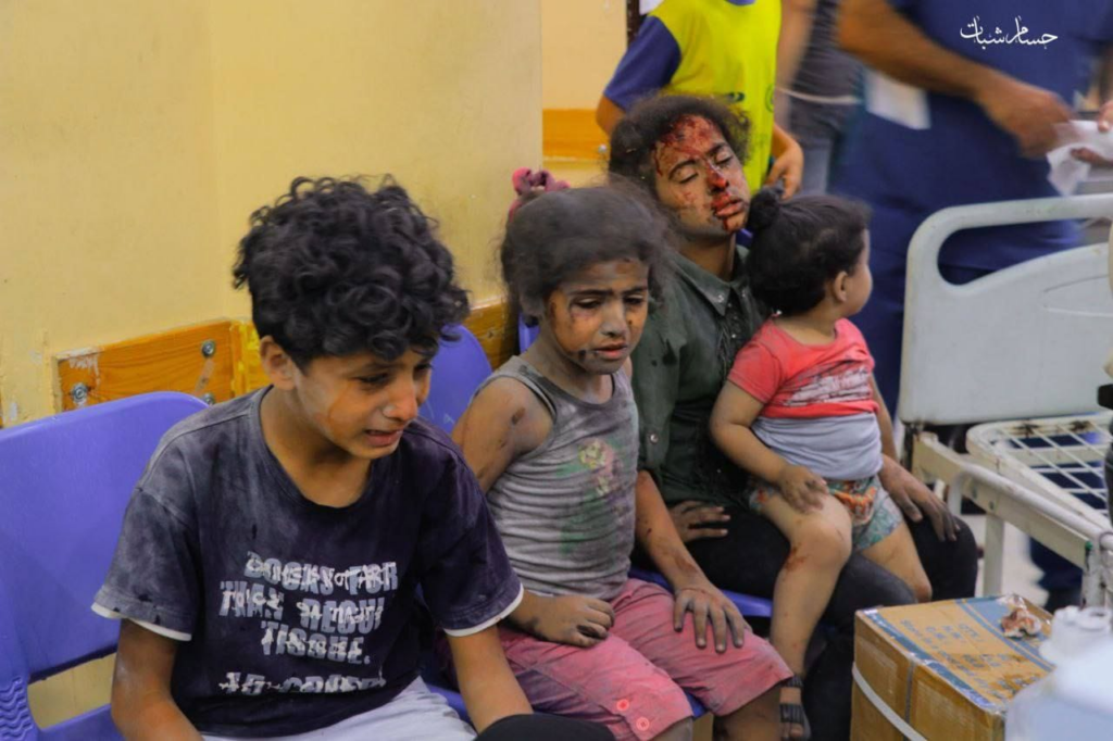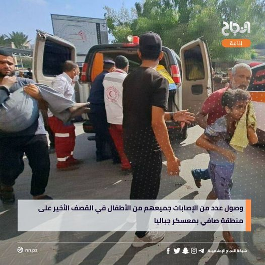 PalTodayTV and @ShehabAgency, among others, shared photos of the injured children being carried by medical personnel and reported that “a number of casualties arrived, all of them children, in the recent bombing of the Safi area in Jabalia camp.”