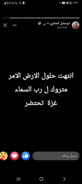 In another poignant Facebook post, Aziz H Almassri described the horror of losing loved ones in war, describing how “you open Facebook after hours of absence…you are surprised by the martyrdom of your beautiful friend, Sayel al-Hanawi… A hideous war that steals our best friends from us and sows grief and fear in the souls of those who remain alive.”