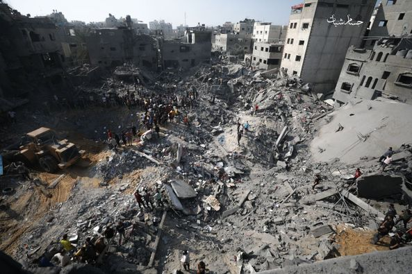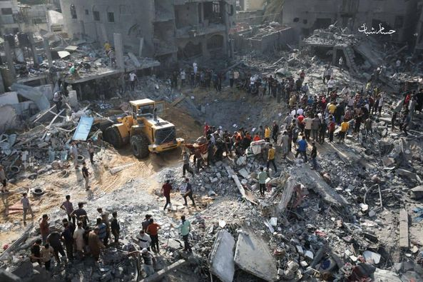 Around midday on November 1, Twitter/X users @hmeteir and @Yasser_Gaza reported that “a new massacre is now being committed by the [Israeli military] in Jabalia camp near the “Six Martyrs Roundabout” in the areas of the Abu Eida and Abu Sharia families. #Gaza.” Anadolu Agency reported that “on Wednesday evening, Israeli fighter jets carried out another raid on the camp, causing extensive damage to dozens of homes.” According to Ramallah News, “the Israeli bombing in al-Faluja destroyed nine houses on top of their residents, leading to the collapse and injury of very large numbers of citizens.”