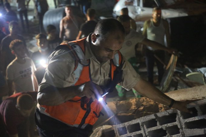 A video by Al-Jazeera Palestine showed “the first moments of medical teams dealing with the Israeli bombing of the Anbar family’s home tonight,” with emergency workers unloading numerous wounded people – including at least three children – at the entrance of a hospital.