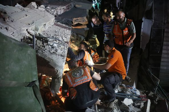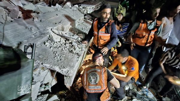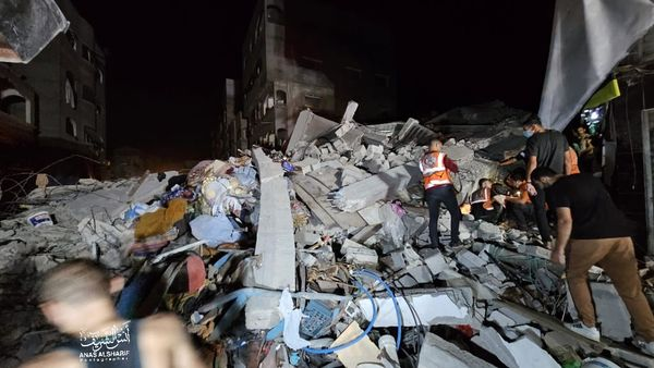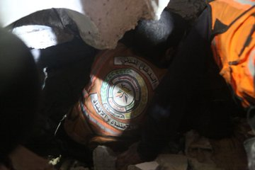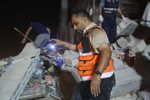 Photographs and videos taken in the aftermath of the alleged strike showed a crowd of people, including numerous emergency workers, combing through the rubble of the Anbar family home. The building appeared to be completely destroyed, with concrete, rebar and personal belongings strewn about as rescuers navigated the debris with flashlights.