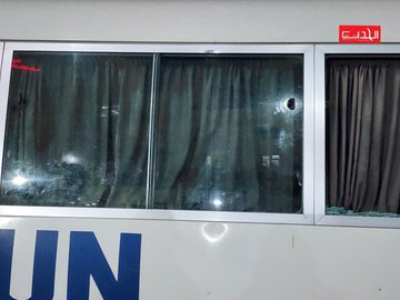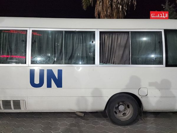 The pictures and videos of the vehicle show that the vehicle displayed at least three UN labels – on each side and the front. In some footage, it is also visible that there was a UN flag attached to its side mirror. The photos and videos were taken after the attack and showed that the windows of the vehicle were completely broken on one side and partly broken on the other side. The metal at the front of the vehicle was slightly damaged as well.