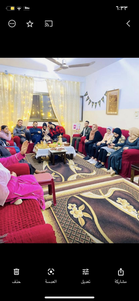 Umm Ahmed Shurab, daughter of Saeed and Hanan and sibling of Nihal, Nawal, Shaaban, and Noman, posted a condolence message to the many members of her family that she lost: “Oh God, the pain is too much for you, my beloved ones. How could you leave me alone? I wish you would come back and tell me that you don’t leave my place, I want you to live with me.” To her mother, Umm Ahmed wrote “I miss you hugging me and being affectionate with me. I wish you would keep calling me like in the past.” To her father, she wrote “Who will make us happy, Dad?” To her sisters, she wrote “How can I get pregnant without my sisters, who were more affectionate than me?” To her brothers, “Well, Noaman and Shaaban would always come and joke with me and hit me on the shoulder, telling me: Are you afraid?” Since her loss, “Ramadan and Eid have come, and I am alone and we are in the tents. I wish to talk to you and tell you that every year you are with me and beside me. I wish I could come to you and photograph you. I wish you would open up to me.” Umm Ahmed Shurab also included multiple images, likely of her siblings and their family. Images of many young children and women were included, as well as of Saeed and Hanan surrounded by their children and grandchildren.