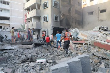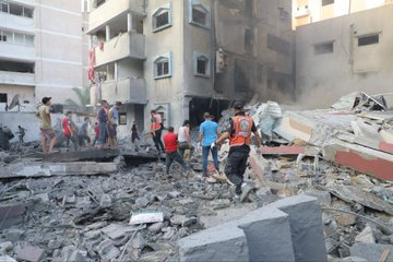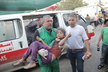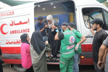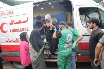 Many media outlets, such as the Palestinian News Agency, Shehab, and Aljazeera have shared images of evacuation efforts and medical crew services transporting the injured, including two women and two children with visible injuries.