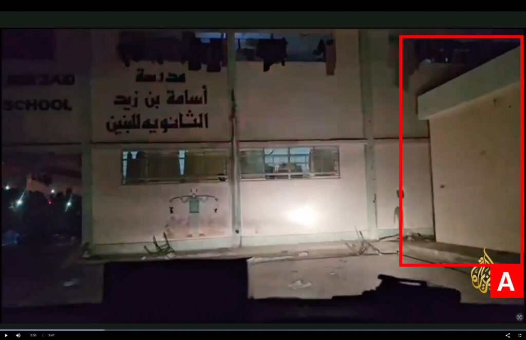 On January 12, 2024, the Israel Defense Forces (IDF) shared a post to their official Telegram account, writing that “During an aerial intelligence gathering mission by the 100th Squadron, Hamas was identified firing from a school and a mosque in the Gaza Strip, and the launchers in the area were neutralized.” Though the military did not name the school, they included a link which showed the school, captured from the perspective of a drone – matching this incident’s geolocation. In the video, small plumes of smoke appear to come from the school or it’s near vicinity, potentially indicating rockets launching. The video progresses, including clips from a number of strikes. As the video does not show the alleged strike on the school, coupled with the fact that the clip itself isn’t dated the strike status for this incident remains ‘likely’. Additionally, open sources did not indicate militant presence at the school during the time of the strike, and Airwars did not find indication that any militants were killed, the civilian harm status connected to this incident remains ‘fair’. This will be updated should additional information become available.