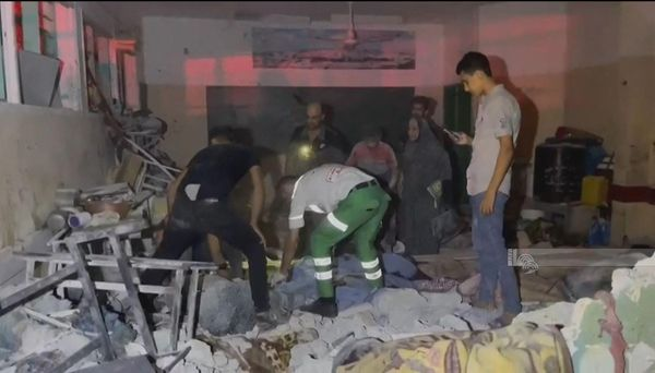 A video shared by the Shehab Agency on Twitter/X showed an injured bearded man whose blue T-shirt was stained with large blood stains and who was asked by a doctor and a paramedic whether there were many injuries in the school. The man confirmed that, indeed, there were many injuries, including children and women, and that he was staying inside the school, in the schoolyard, while the strike hit the school directly.
