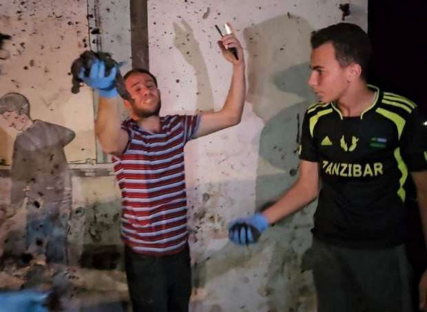 Dramatic pictures, among others, posted by Education and awareness and Wahid Abu Raad Facebook accounts, showed dead people wrapped in shrouds lying on the floor, as well as several killed children and adults covered in blood amidst the debris. Pictures shared by WAFA News Agency showed rescue teams and civilians trying to recover dead and injured people from the Debris-littered building and transporting the wounded in an ambulance.