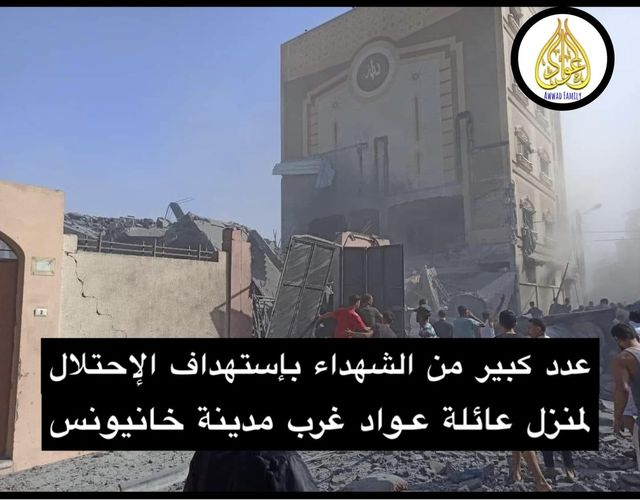 Shortly before 11:35 AM on Friday, November 3, 2023, the Awad family home in the Japanese neighbourhood of Khan Younis, south of the Gaza Strip, was hit by an alleged Israeli airstrike, resulting in at least 24 civilians killed, including four generations of a displaced family, and injuring 45 other civilians.