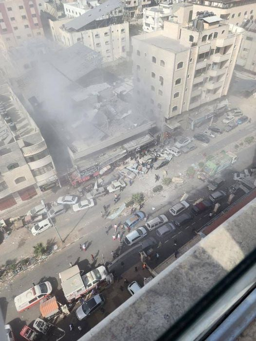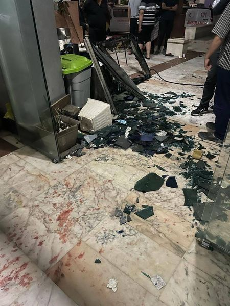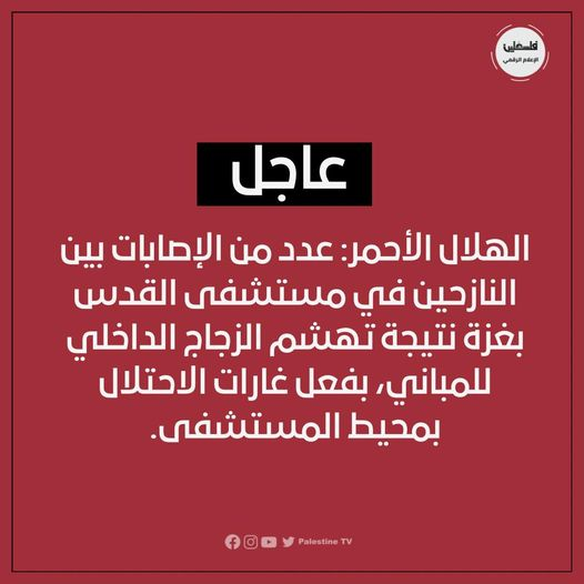 The Facebook page of the Awda Satellite Channel shared a twenty-one-second clip showing damage to hospital windows and various types of shattered glass pieces all over the floor. In addition, “Abu Osama the fighter” shared an image on Facebook showing the destroyed top floors of the hospital. Al Jazeera Egypt’s video displayed numerous displaced Palestinians inside the hospital which was engulfed by dense smoke. @ShehabAgency on Twitter/X shared three images of the damage caused by the strike, the photos show broken windows, shattered glass, and a blood-stained floor.