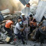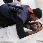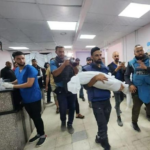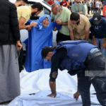 On social media, numerous people highlighted the human cost of the alleged Israeli attack. Facebook user Fatima Ezzahra Rifai wrote “another massacre in Al-Maghazi camp and targeting residential areas, however, we will not get used to the scene of a movie and our hearts and eyes will not get used to the scenes and tragedies left by the massacres that preceded it. The majority of the martyrs and wounded are children and women as usual…33 martyrs, including 12 children, in Al-Maghazi camp. They are not numbers. 33 lives. 33 stories. 33 ambitions.” Ameer Halawa announced on Facebook that “Gaza is being destroyed. A massacre in Al-Maghazi refugee camp [resulted in] 70 martyrs at the hands of [Israeli forces] a short while ago. Most of them were children who were sleeping and were assassinated by the sinful hand of treachery…Children no older than six years old. The youngest of them is 10 days old.” Facebook user Ammar Zain posted that “Israeli [military] aircraft bombed three houses over the heads of their residents. More than 40 martyrs have been killed so far” and shared a photo of rows of body bags and the uncovered bodies of five children and babies. Nadia Nada, Alhamri Tawakul Al’iihtiatii and others shared a clip of a Palestinian Red Crescent worker holding a dead baby in his arms following the bombing. Mourning the victims, Dr-Loghlam Azzouz shared photos of the same babies and children.