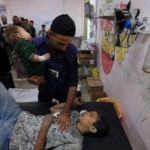 That day, @ShehabAgency reported that “a number of martyrs and injuries were transferred in the targeting of two homes for the Samaan and Al-Muzain family in the Al-Salahat roundabout area in Al-Maghazi camp in the central Gaza Strip. So far, 10 martyrs and 40 wounded” and shared videos and images of the casualties, including a baby, arriving at a hospital following the alleged Israeli attack. Other sources including Gaza Now and Facebook user Khalil Al Faqawe specified that the Semaan and Al-Muzain family homes had been “targeted” resulting in “more than 40 martyrs.” It is possible more than two homes were hit; Facebook user Rajab Saed alleged three homes had been struck. The Rafah Health Administration shared a video of multiple injured children being treated at a hospital and reported that “a large number of serious injuries piled up on the floor in the emergency department of Al-Aqsa Martyrs Hospital as a result of the Al-Maghazi camp massacre.” According to BBC News, “the Al-Maghazi camp is in the area where Israel advised people in the north of Gaza to evacuate to for safety as they continue their campaign to destroy Hamas in retaliation for its 7 October attacks on Israel. However, air strikes in the south have not stopped.”