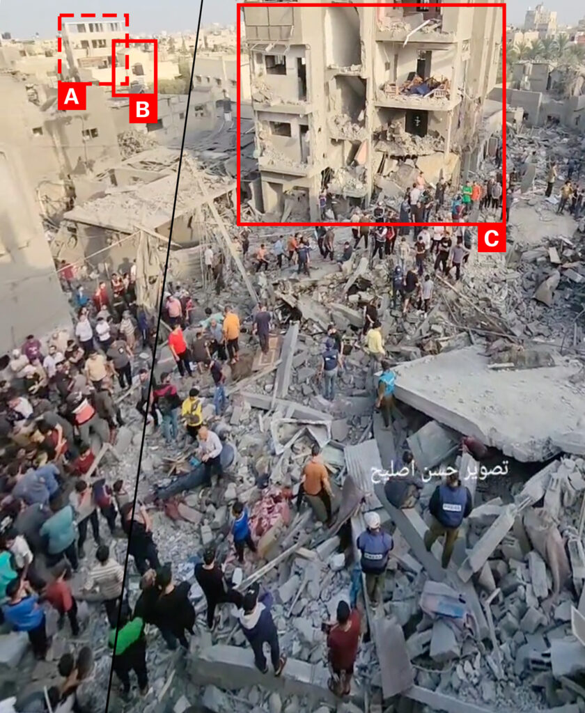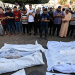 Journalist Hassan Eslieh tweeted a video of rescue crews combing through extensive piles of rubble in a residential area, describing the footage as “scenes from the massacre in Al-Maghazi camp, committed by the [Israeli military] in the central Gaza Strip last night, which resulted in more than thirty martyrs and dozens of wounded.” @EekadFacts tweeted a photo of at least 13 body bags lined up inside a makeshift morgue and reported that “the [Israeli] forces committed a new massacre in Al-Maghazi camp after destroying an entire residential block, resulting in 41 martyrs, a large number of whom were children.” According to Green Future, “in the early hours of Sunday morning, the details of the massacre committed by the [Israeli] forces last night against civilians in the Maghazi camp…began to emerge. The number…rose to 45 martyrs, most of whom were women and children, according to what a medical source reported, while the camp residents confirmed that the number is much higher due to their inability so far to remove the rubble of the houses that were crowded with citizens and displaced persons.” According to Al Qahera News, “Bashir Jabr, Al-Qahira News correspondent in Khan Yunis, reported that the occupation aircraft targeted the house of the Semaan family in Al-Maghazi Camp; which resulted in the martyrdom of more than 50 martyrs and the injury of others, most of whom were women and children.” Facebook user Mouhsen Abu Mosameh alleged even higher injury tolls, reporting “100”.