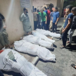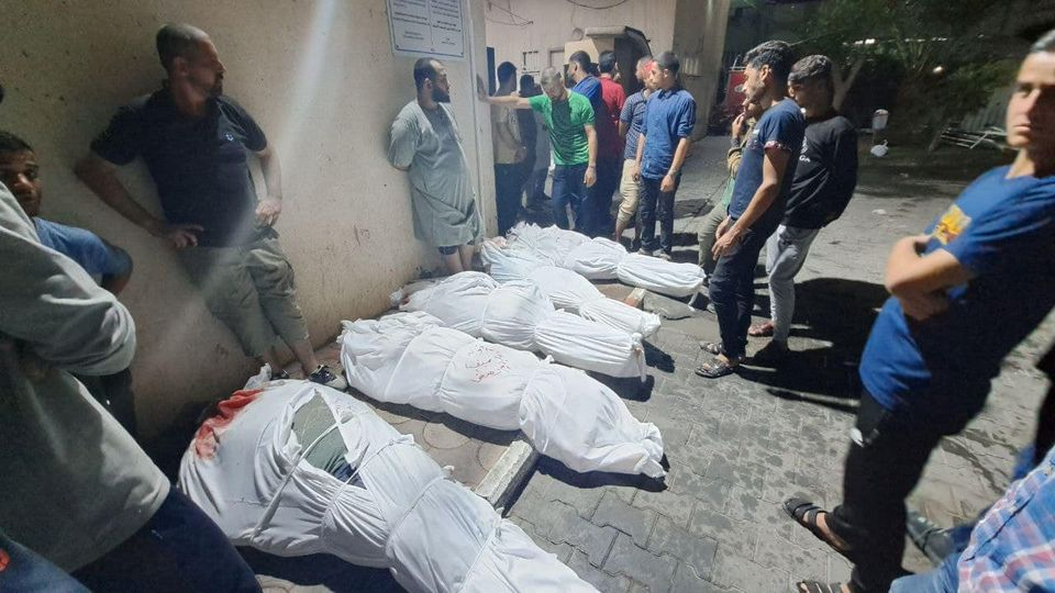 Another image posted by the Shehab Agency on Twitter/X, and widely circulated by others, shows five of those killed in the strike wrapped in white shrouds and lined up together on the pavement of a street.
