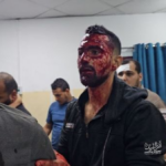 Facebook user Fouad Bakhouche shared the images taken by Anas Al-Sharif showing two adult men with head injuries with their faces covered with blood as well as a huge blaze.