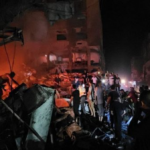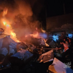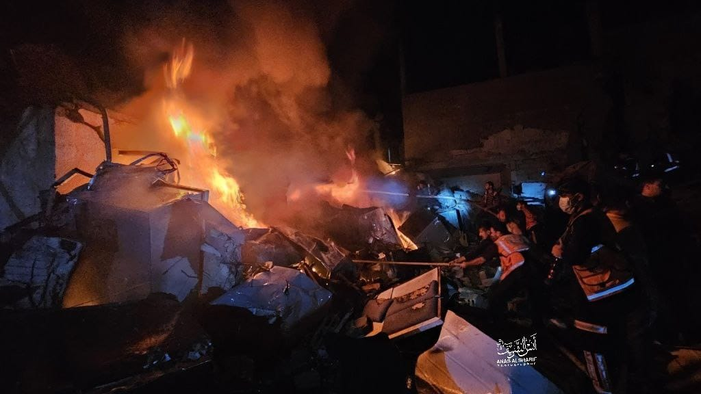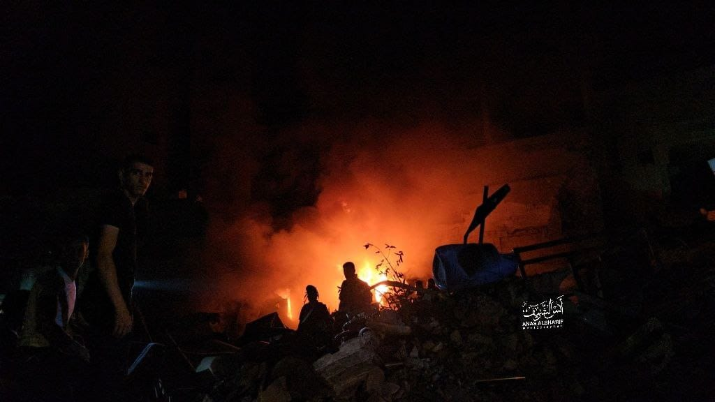 Shehab Agency posted photos on Twitter/X depicting the aftermath of the strike. The images showed a completely destroyed building with a crowd, including Civil Defense members, attempting to search through the rubble. Rescuers appeared to be hampered in their efforts by a fire burning among the ruins of the building, which lit up the darkness of the night.