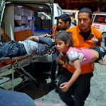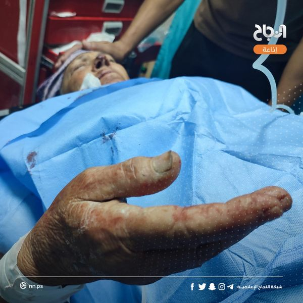 Najah FM also posted photos of two more of the wounded, including a young girl with a bandaged arm and an abdomen injury and an elderly woman.
