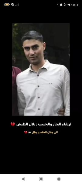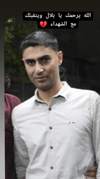 Khaled Abo Al Saher shared a photo of Bilal and wrote that “my eyes shed tears, my heart grieves, and I am saddened by your departure…the martyrdom of my dear brother, Bilal al-Tabash. May God have mercy on you, my love.”