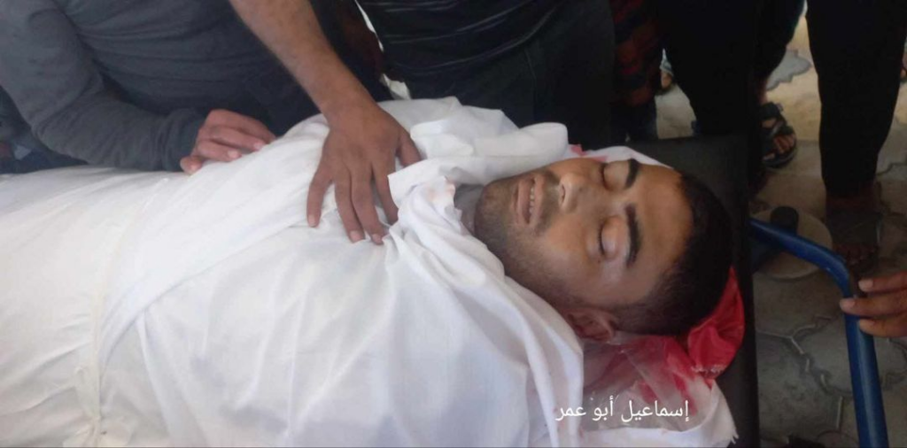 On the day of the alleged Israeli strike, @Sa7atPlBreaking and @ShehabAgency shared photos from “the farewell of the martyr Bilal al-Tabash, who was killed by [Israeli] bombing near the European Hospital in the Al-Fokhari area in Khan Yunis this afternoon.” The pictures showed Bilal’s body shrouded in a white sheet with his face exposed. According to various sources, including Nabd News and Facebook users Ajel Falstin al’an and Eid al-Sayyed al-Mahdi, “this young man, Bilal al-Tabash, was killed and another was injured” in the alleged airstrike by Israeli forces. No further information has been given regarding the wounded.