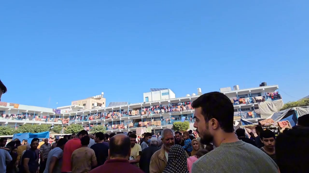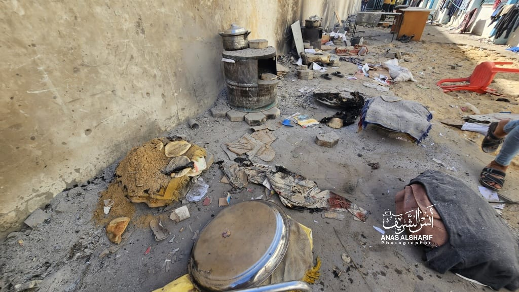 In a video by Al Jazeera, a child tells the camera “I was standing here when three bombings happened. I carried a body with my own hands, and I carried another headless body with my own hands” as he breaks down sobbing. On Facebook, The Eye of Palestine shared a graphic photo of the bodies of six small children laid out on the floor, alleging that they were killed in the Israeli airstrike. Facebook user, Anas al-Sharif, posted photos of the “damages and injuries in the shelling of the occupation of al-Israa Al Fakhoura School in Jabalia, northern Gaza Strip, Gaza.” These images taken in the courtyard of the school show scattered food and personal belongings, as well as multiple casualties.