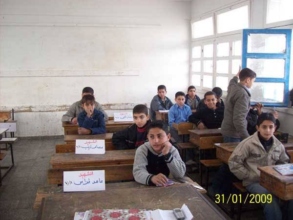 Drawing attention to the history of strikes on the al-Fakhoura School, Twitter/X user, @yasser_gaza, shared a photo from January 31, 2009, explaining, “In this photo, the martyr friend Ihab Ayoub appears sitting in the first seat, and next to him is a paper on which is written the name of our martyr friend “Ahed Qadas,” who was martyred with his colleagues in the #Al-Fakhoura_School massacre in 2009. Today, the [Israeli forces] committed a new massacre against the displaced people in our school, and Ihab was martyred yesterday.”