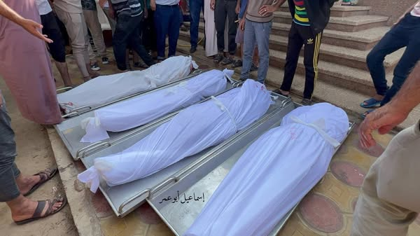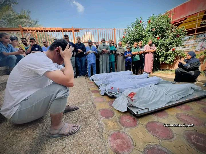 An image posted on the Bani Suhaila Facebook page, and also shared by others, shows four bodies – identified as the members of the Radwan family killed in the incident – lying under white shrouds, whilst a group of people stand to perform funeral prayers over them.