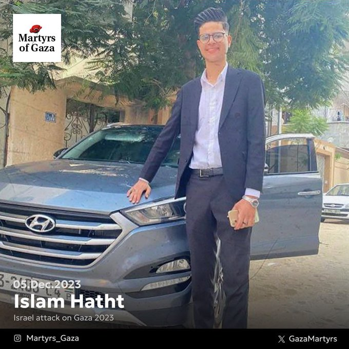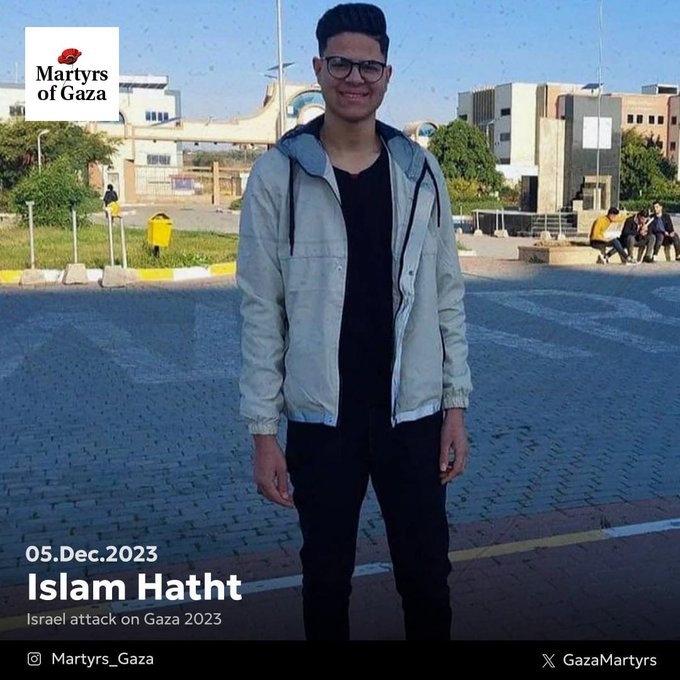 Another @GazaMartyrs post described Islam as “the owner of the morning laughter that brightens our day every day at the university. Beloved by all for his sweet nature everywhere. Islam was studying media, and he loved his mother dearly. He wished to make her happy by graduating from university.” A day before he was killed, Islam reportedly said to his friends: “You know my situation; I bid farewell to the world.”