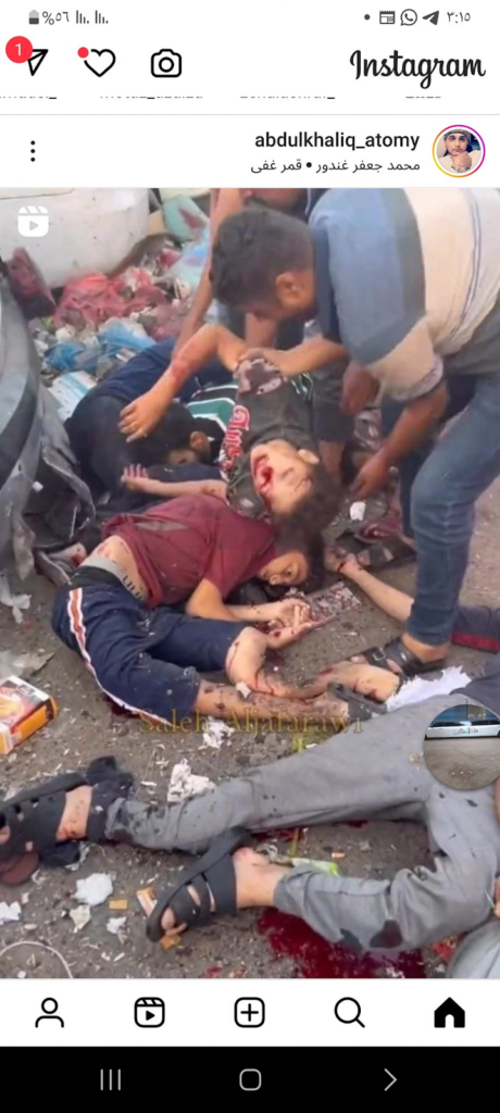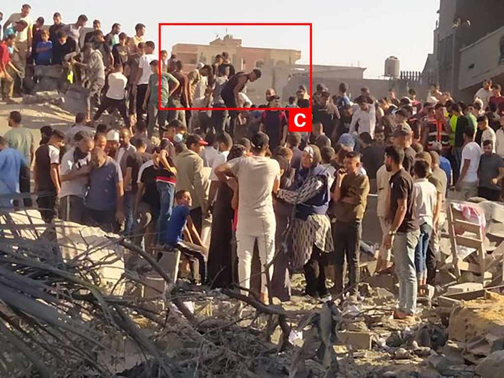 Videos of the immediate aftermath circulated online, showing the desperate effort to save the lives of survivors. In one of the videos, an ambulance can be seen rapidly arriving at the hospital, as a group of people rush an injured child inside. The footage then cuts to a man holding the lifeless body of a girl. The man, who is wearing a Red Crescent uniform, shows the body to witnesses outside the hospital while crying: “This child is Israel’s target!” The footage finally shows a severely injured man being carried on a stretcher into the building.