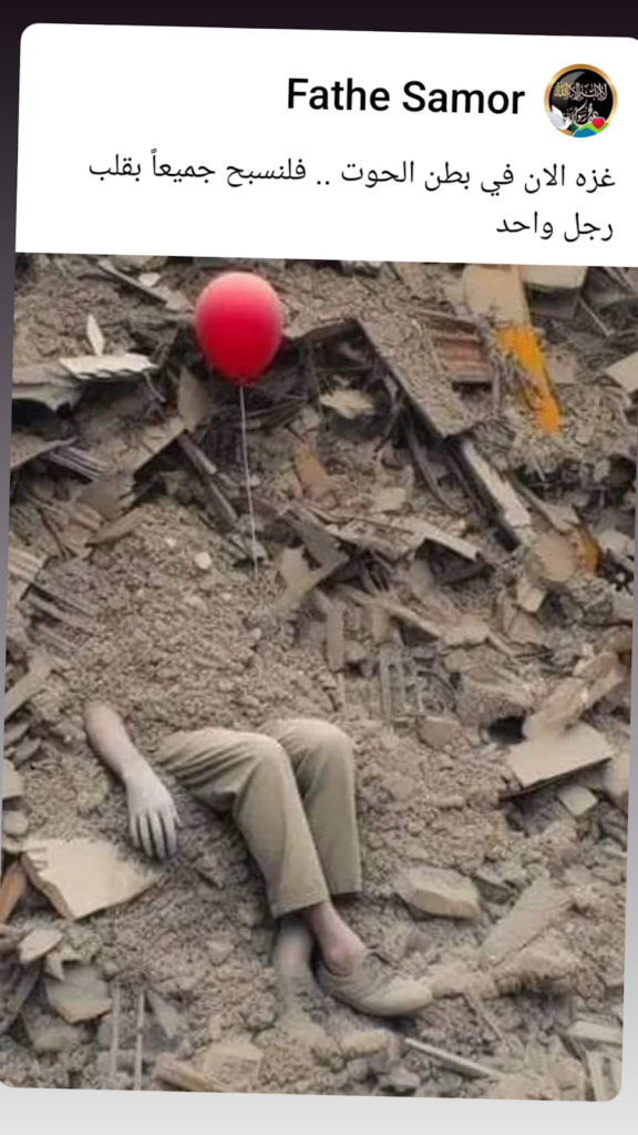 User Umm Aboud Khater shared a farewell message for Mai Ismail Sammour, whom she met at school, describing her as “kind, affectionate and calm.” Her Facebook post featured a photo of the youngest victim of the strike, the “polite child” Yousef Ayman Sammour. A bright, green tree stands behind him. According to Said Harfouchi, who also shared this photo, he was “pulled out from under the rubble to join his parents and siblings”.