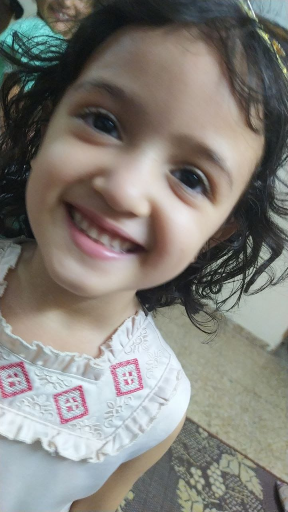 Several photos capture Farah Ayman Sammour smiling sweetly at the camera, and a video shows her happily running around while someone holds her hand and records with the other. In another picture, her teenage sister Hadeel Ayman Sammour proudly holds a diploma.